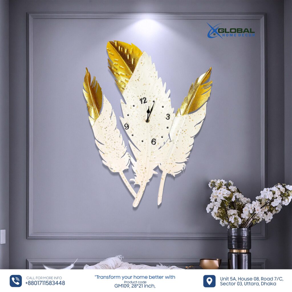 Two Leaves Wall Clock Gold & White